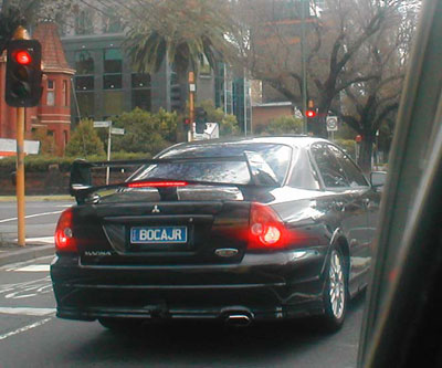 | A car in Australia who's owner appears to support the Argentine soccer team "Boca Juniors" March, 2004 | |||